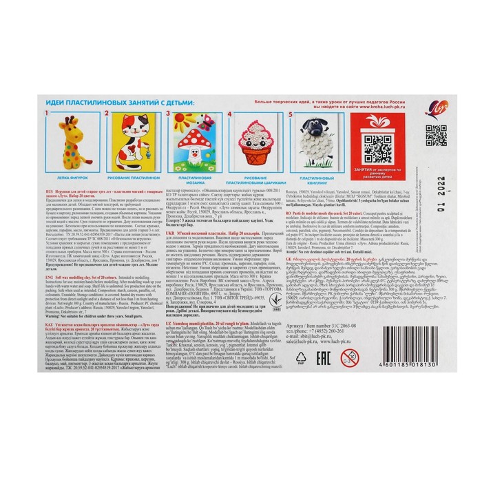 Пластилин мягкий (восковой) «Луч. Кроха», 20 цветов, 300 г, со стеком — Характеристики