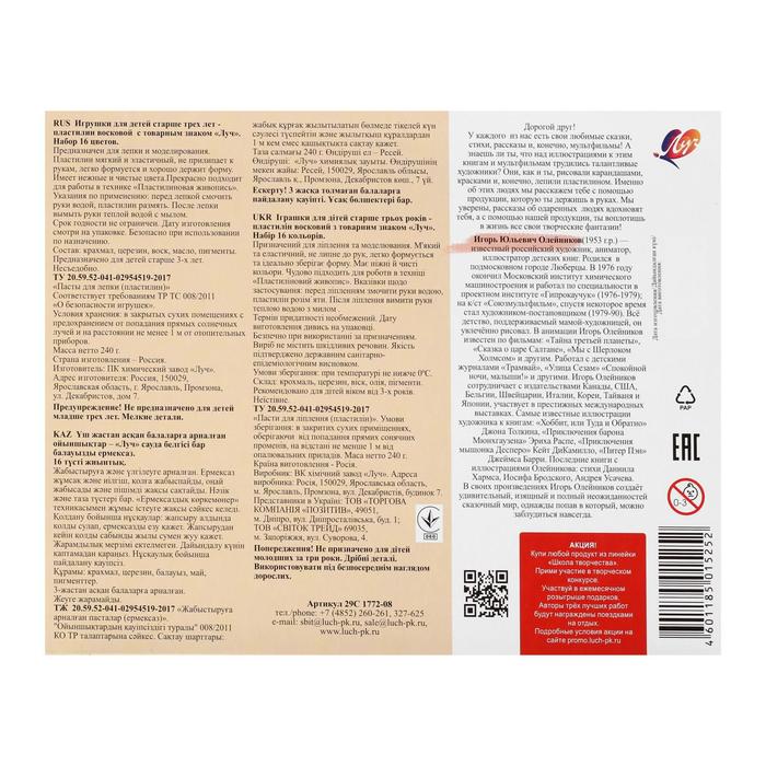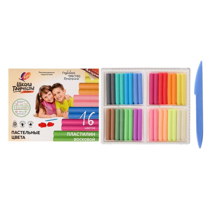 Пластилин мягкий (восковой) «Луч. Школа творчества», 16 цветов, 240 г — Характеристики