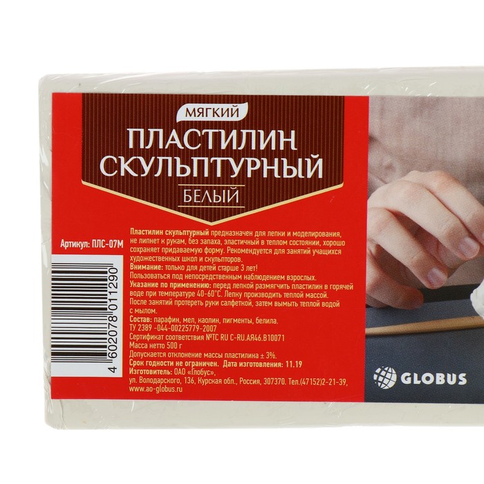 Пластилин скульптурный GLOBUS, мягкий, белый, 500 г — Характеристики