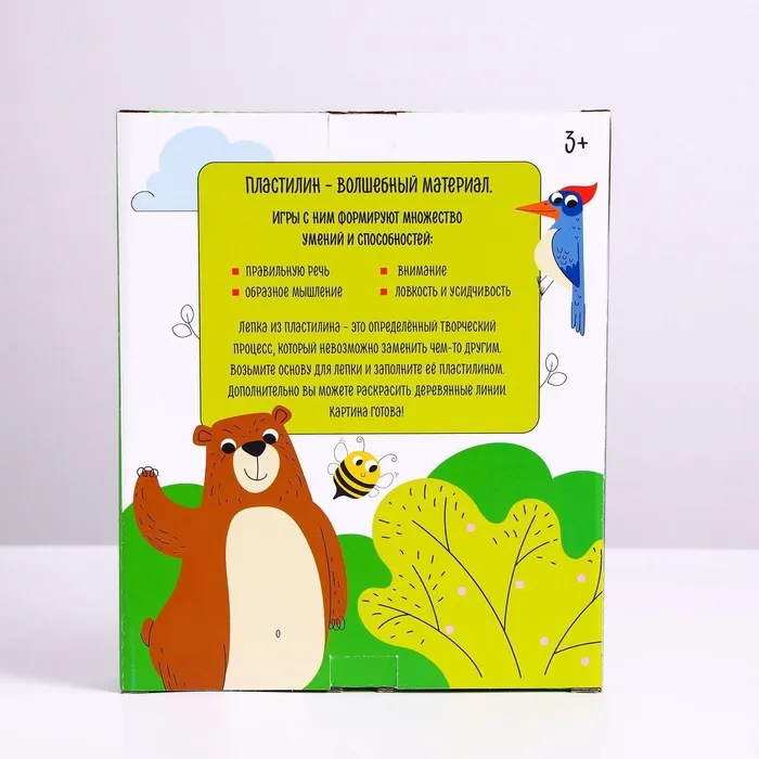 С этим набором ребёнок создаст оригинальную картину в технике пластилиновой аппликации.