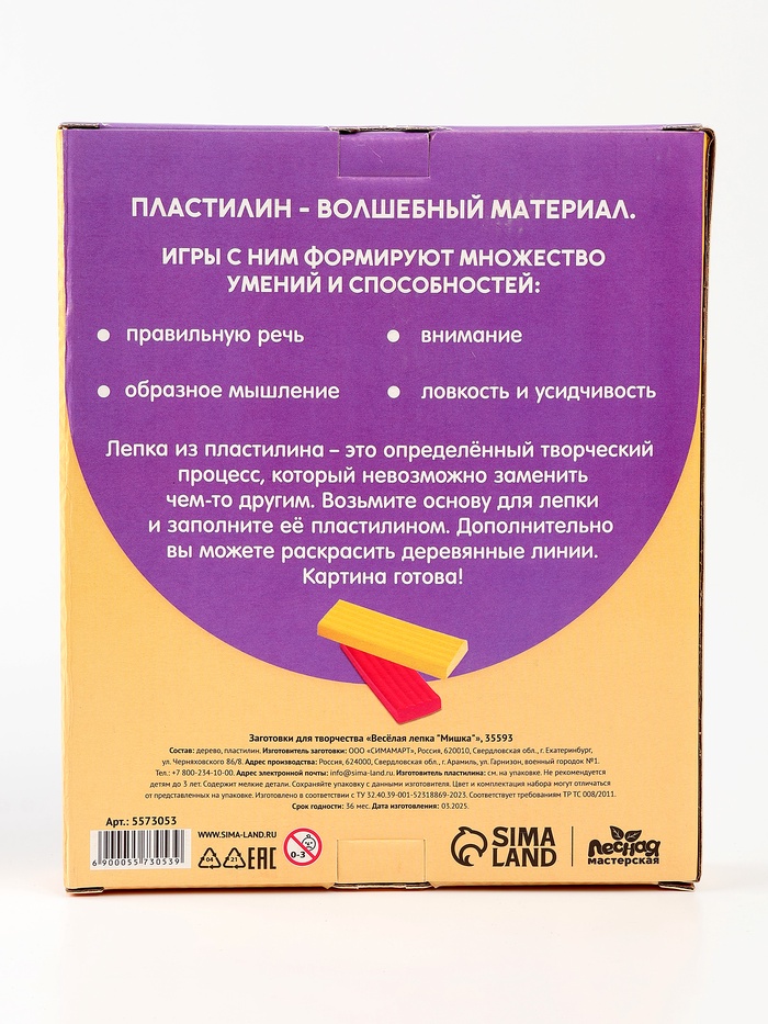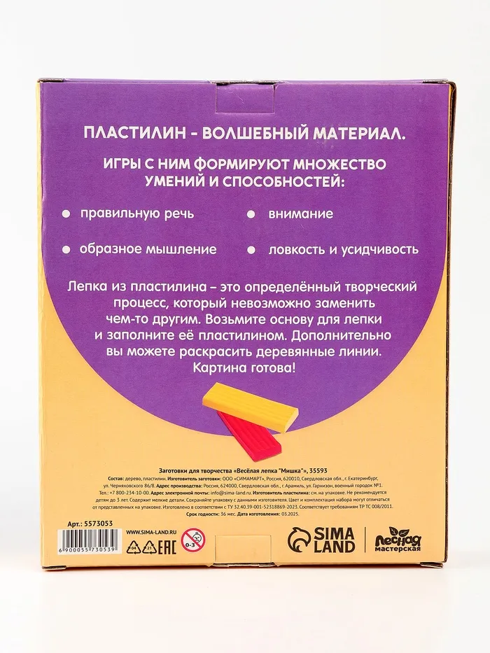 Пластилиновые картинки «Мишка», 21 х 15 см — Характеристики