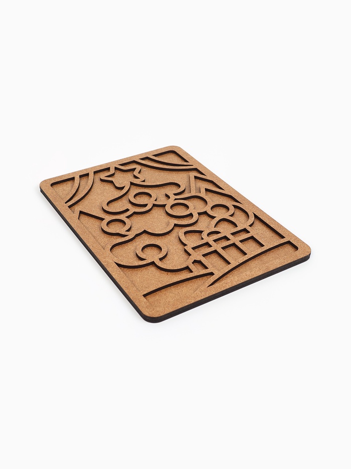 Возьмите деревянную основу для лепки и заполните её пластилином по образцу на упаковке или проявите фантазию. Дополнительно вы можете раскрасить деревянные линии.
