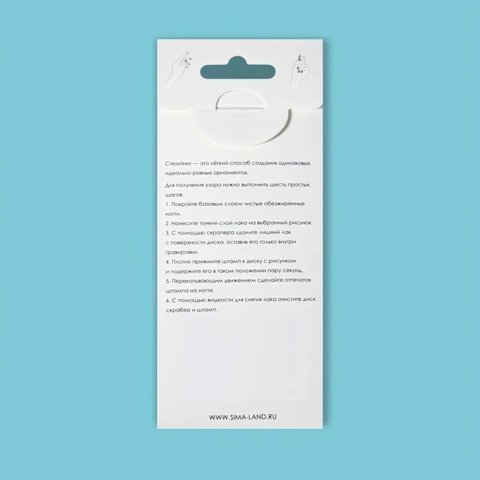 Размер: 12 см х 6 см. Перед использованием нужно снять защитную синюю пленку. Диск представляет собой прекрасный инструмент для декора ногтей, который способен дополнить любой повседневный маникюр. Стемпинг ногтей рекомендуется делать с помощью специального гель лака, штампа и лопаточки. Этот продукт поможет вам создать уникальные узоры, которые будут выглядеть стильно и притягательно.