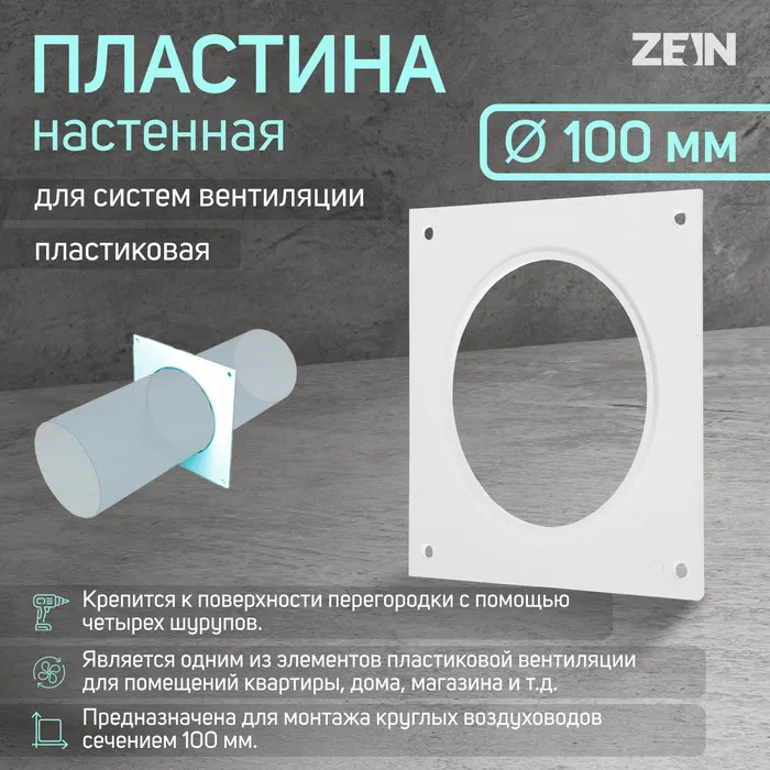 Пластина настенная ZEIN, d=100 мм, вентиляционная — Характеристики