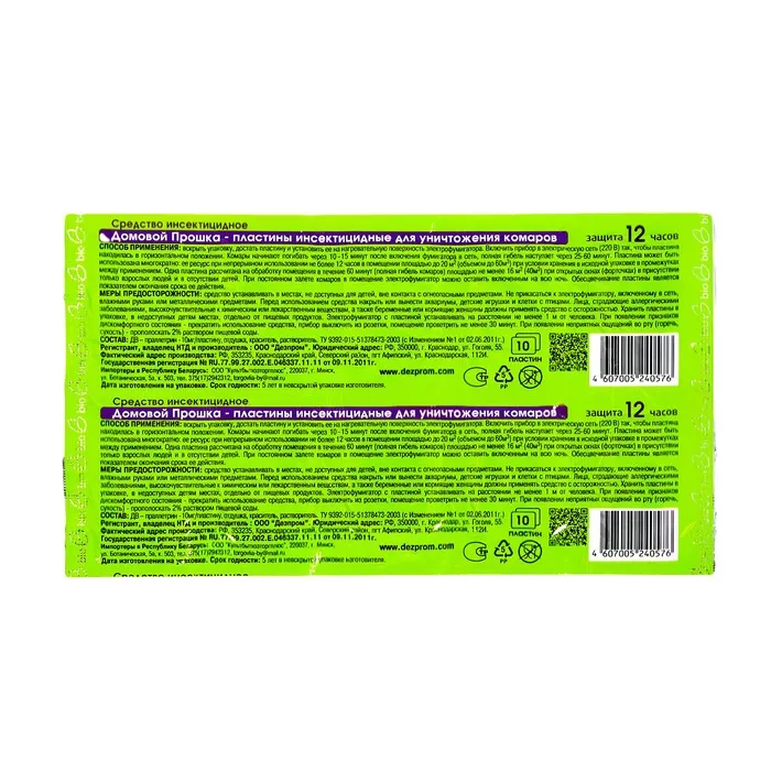 Пластины от комаров Домовой Прошка БИО Family, 10 шт — Характеристики