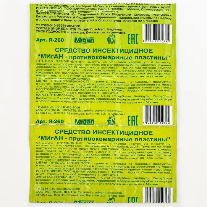Способ применения: достать комплект пластин и электрофумигатор. Разместить пластину в электрофумигаторе. Повернуть вилку электрофумигатора таким образом, чтобы пластина лежала на керамическом нагревательном элементе. Включить прибор в розетку. Для прекращения работы