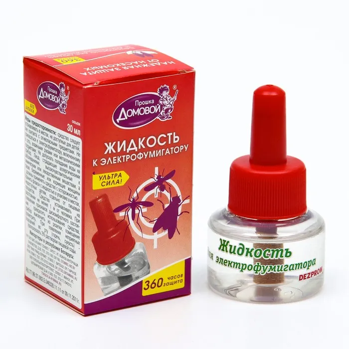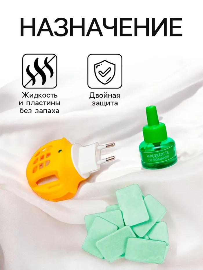 Меры предосторожности: не трогать включенный в розетку электрофумигатор влажными руками, металлическими предметами и не допускать попадания влаги на электрофумигатор. Включать комплект на