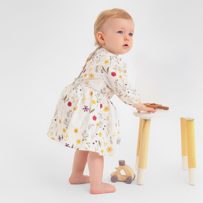 Детское платье-боди в цветочно-растительном стиле идеально подойдет для повседневных летних образов девочки. Выполненное из мягкой хлопковой ткани, оно обеспечивает комфорт в жаркую погоду и легко сочетается с другими элементами гардероба. Модель с длинным рукавом и круглым вырезом отличается свободным покроем, который не сковывает движения и подходит для активных малышей с ростом 86–92 см.