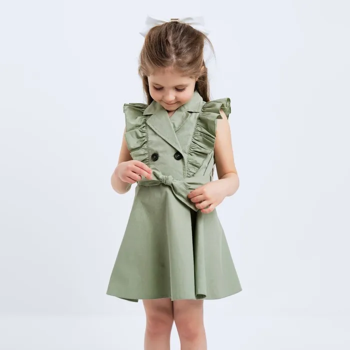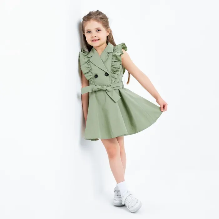 Платье детское двубортное KAFTAN, размер 30 (98-104 см), оливковое — Характеристики