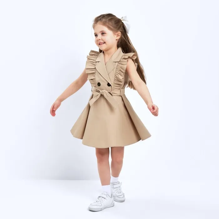 Платье детское двубортное KAFTAN, размер 34 (122-128 см), бежевое — Характеристики