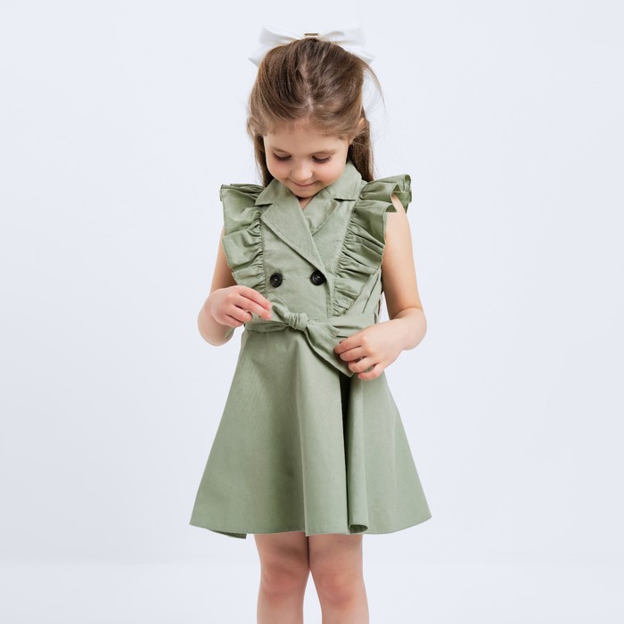 Платье детское двубортное KAFTAN, размер 36 (134-140 см), оливковое — Характеристики