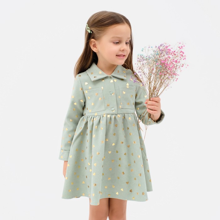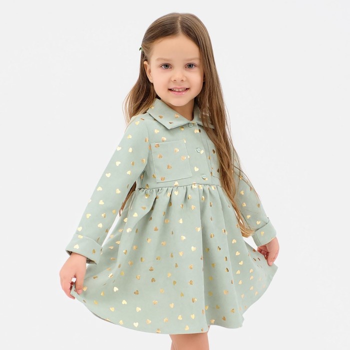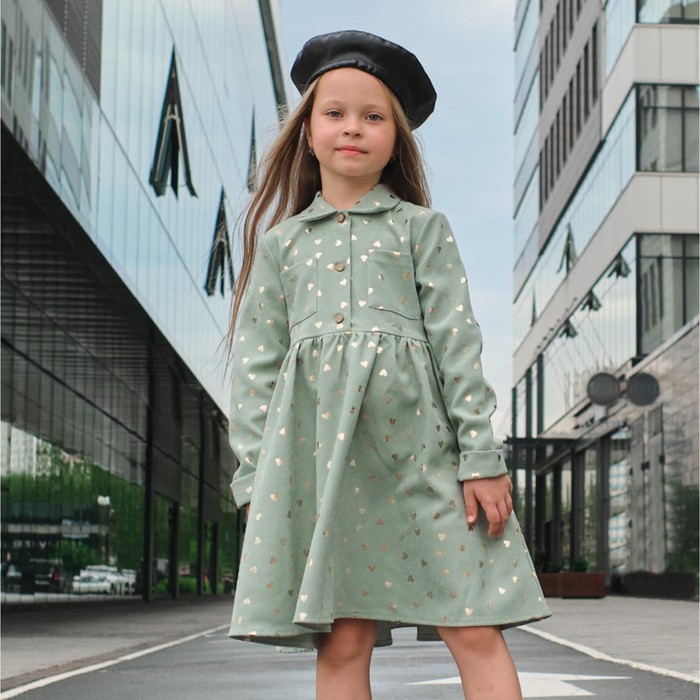 Платье детское KAFTAN «Сердечки», размер 36 (134-140 см), зелёное — Характеристики