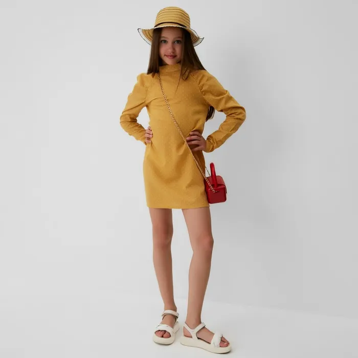 Платье детское MINAKU: Cotton collection цвет горчица, рост 140 — Характеристики