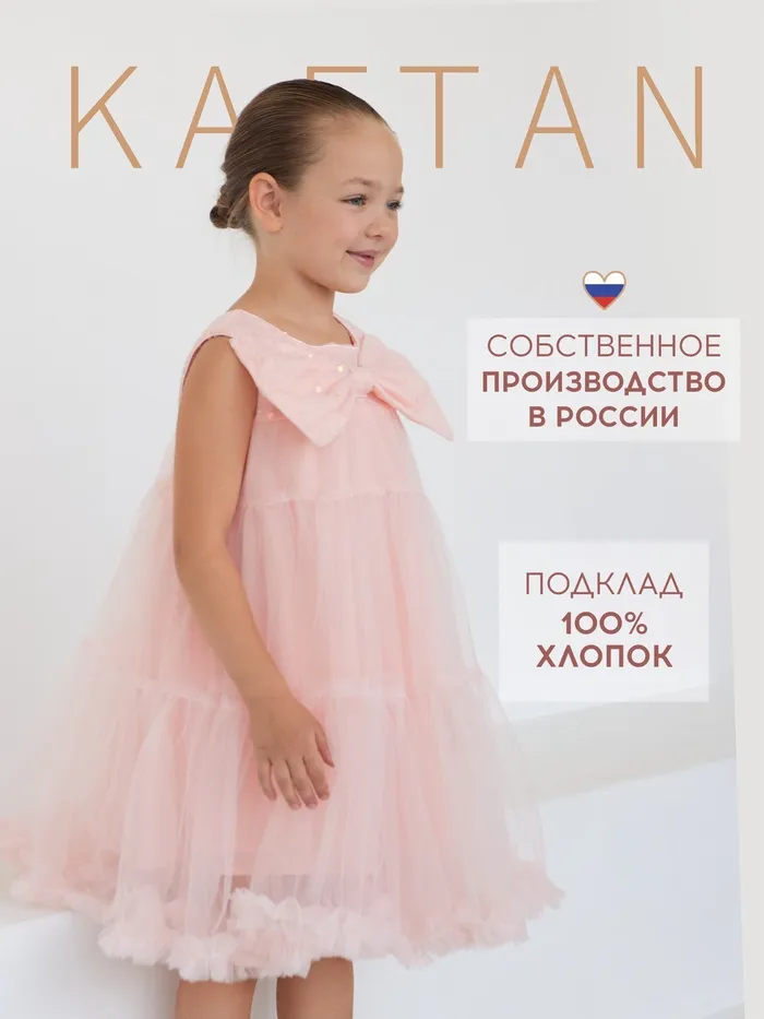 Платье детское нарядное KAFTAN рост 100, персиковый — Характеристики