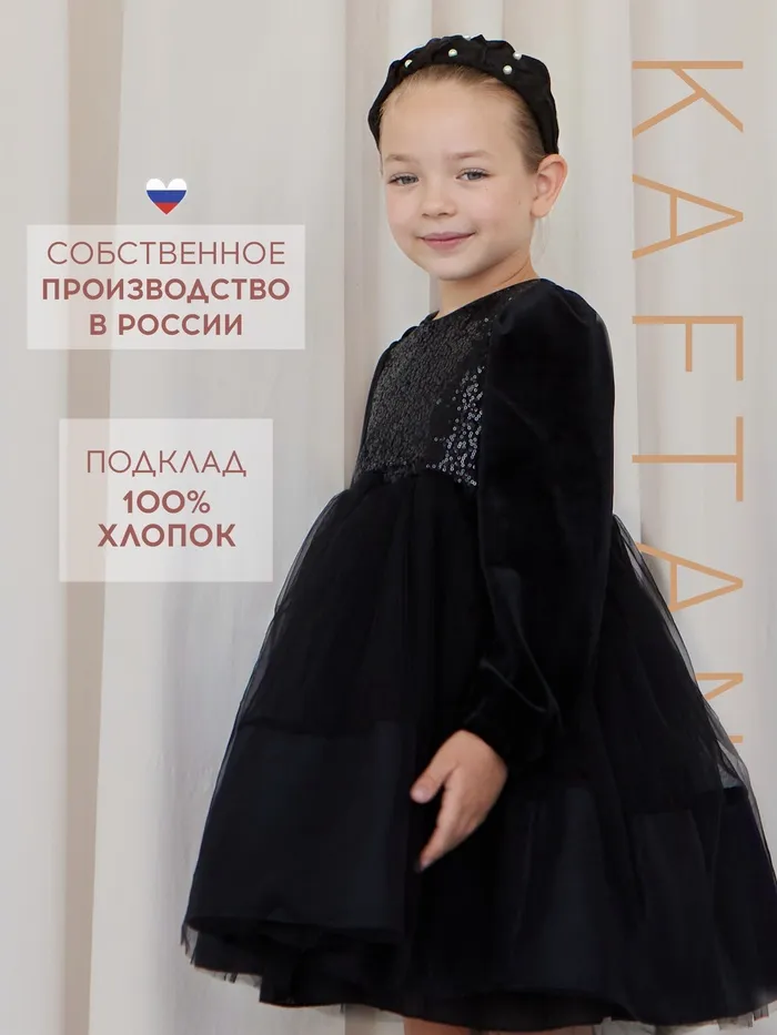 Платье детское нарядное KAFTAN рост 120, черный — Характеристики