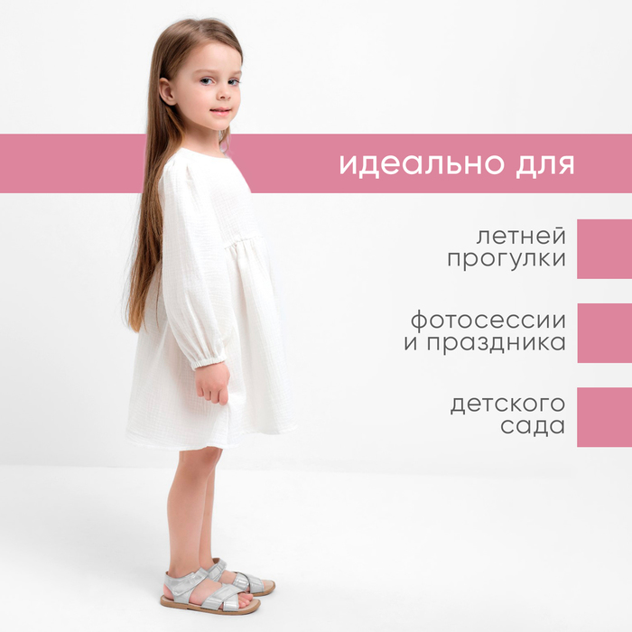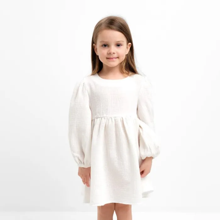 Платье детское с длинным рукавом KAFTAN «Муслин», размер 30 (98-104 см), белое — Характеристики
