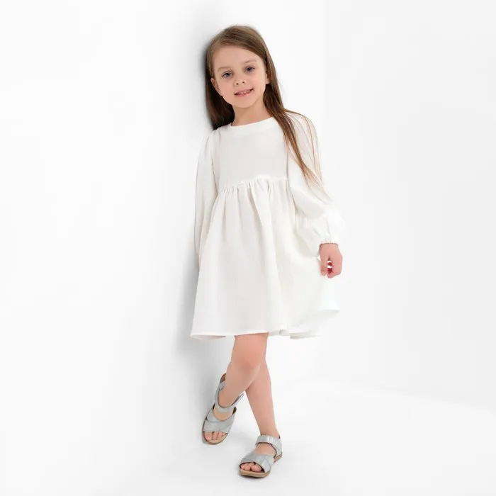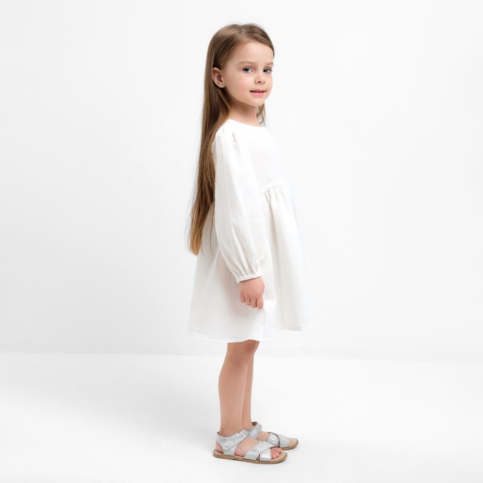 Платье детское с длинным рукавом KAFTAN «Муслин», размер 30 (98-104 см), белое