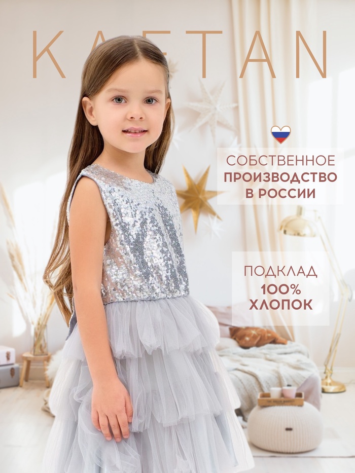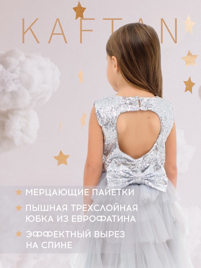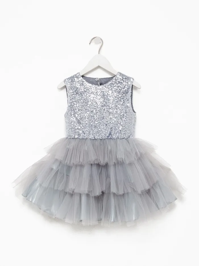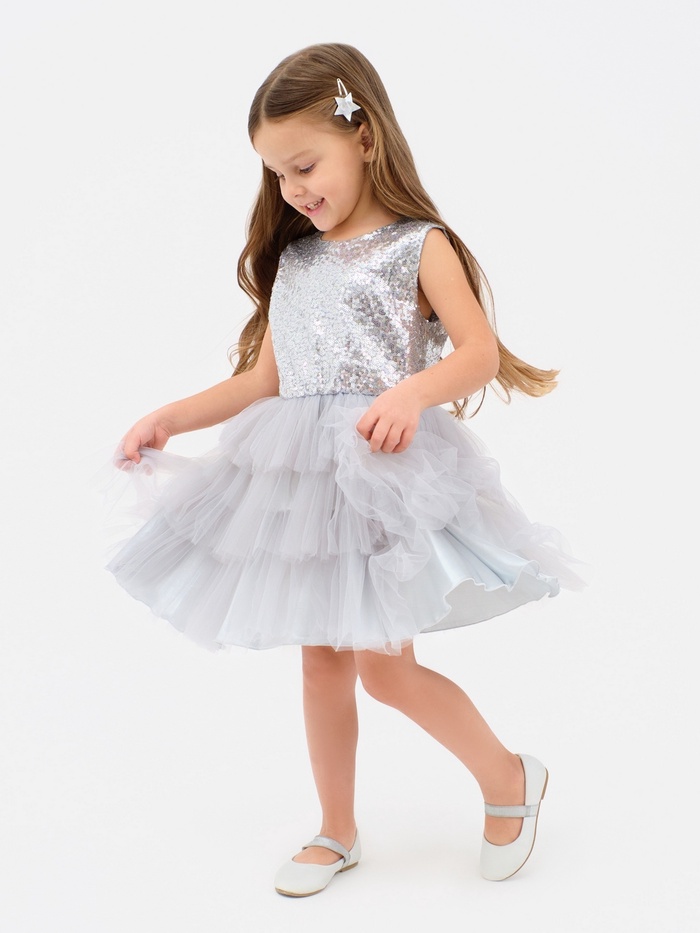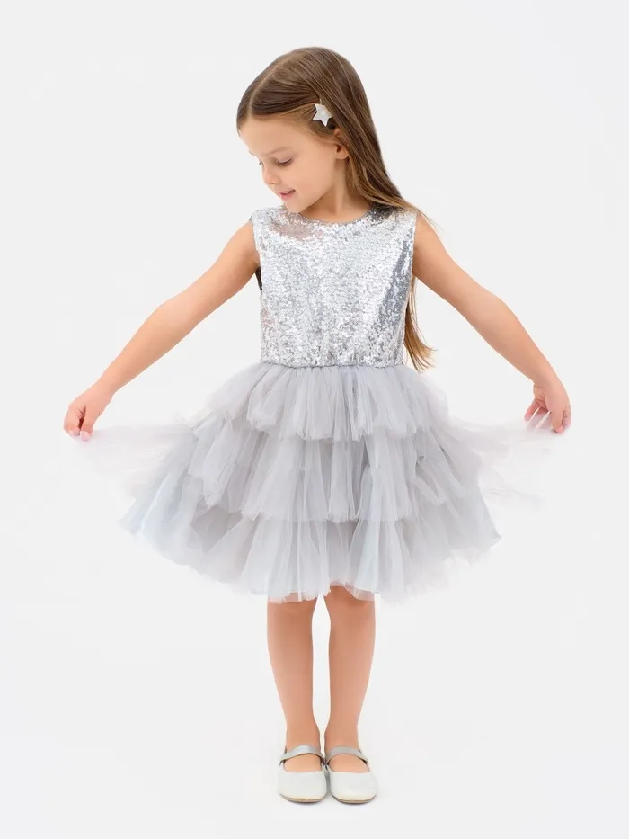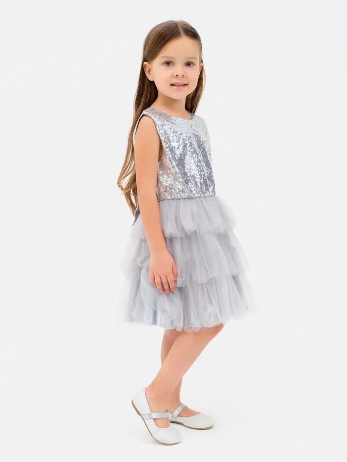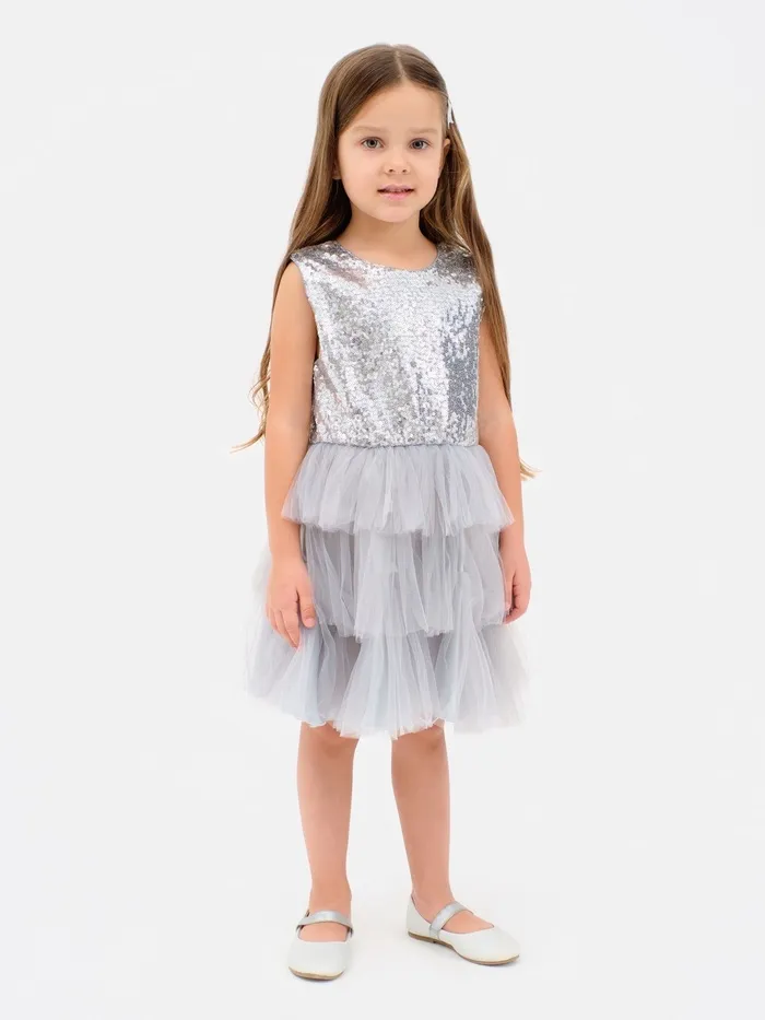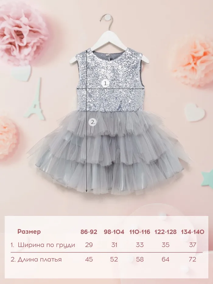Платье детское с пайетками KAFTAN, размер 34 (122-128 см),серый — Характеристики
