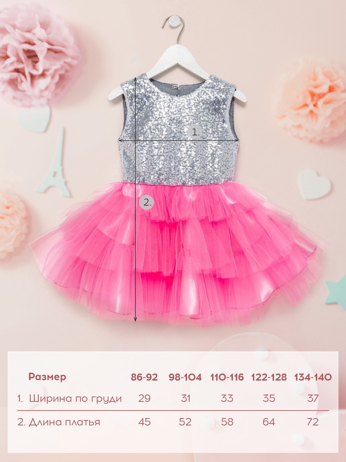 Платье детское с пайетками KAFTAN, размер 36 (134-140 см), ярко-розовый — Характеристики