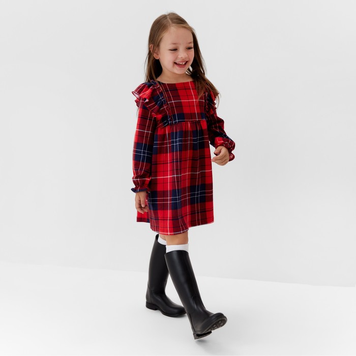 Платье детское с рюшами KAFTAN "Клетка" размер 28 (86-92 см) — Характеристики
