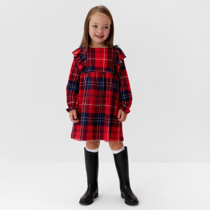 Платье детское с рюшами KAFTAN "Клетка" размер 30 (98-104 см) — Характеристики