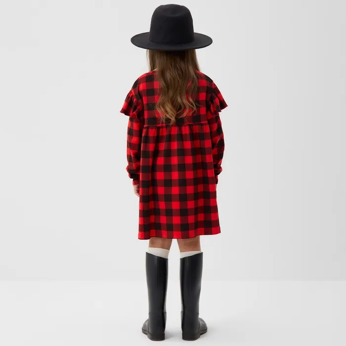 Платье детское с рюшами KAFTAN "Клеточка" размер 30 (98-104) — Характеристики