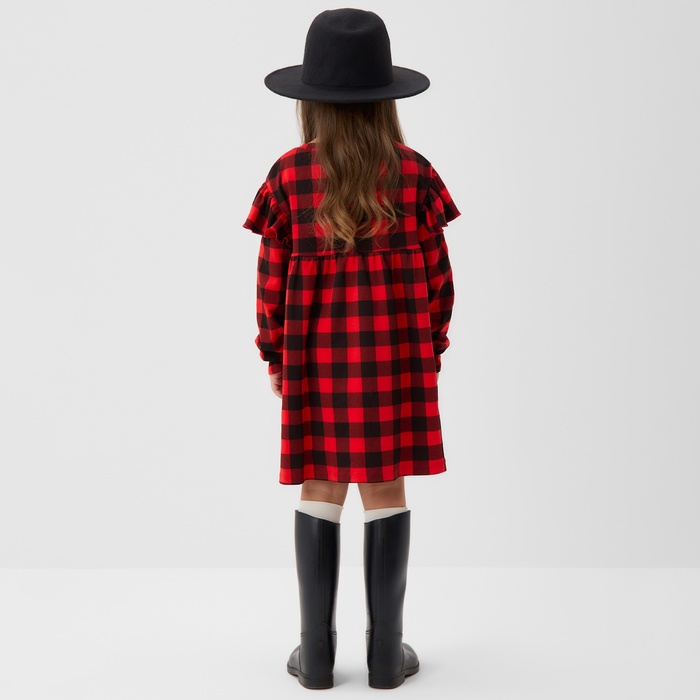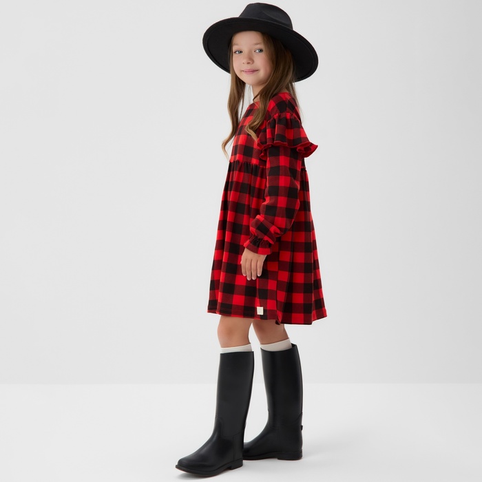 Платье детское с рюшами KAFTAN "Клеточка" размер 32 (110-116) — Характеристики