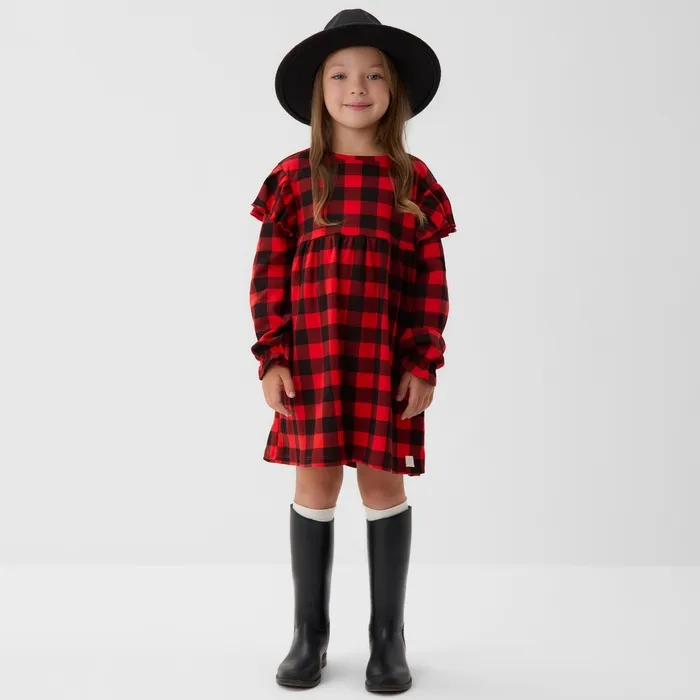 Платье детское с рюшами KAFTAN "Клеточка" размер 32 (110-116) — Характеристики