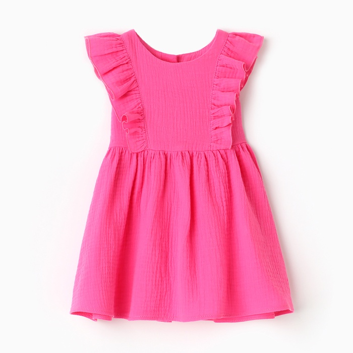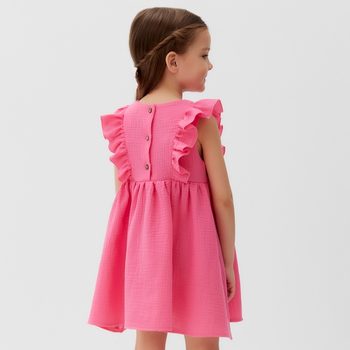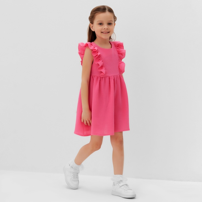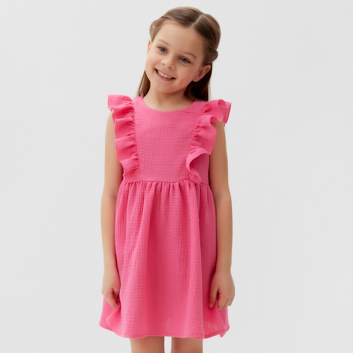 Платье детское с рюшей KAFTAN "Муслин", р.34 (122-128 см), ярко-розовый — Характеристики
