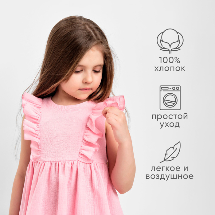 Платье детское с рюшей KAFTAN «Муслин», размер 30 (98-104 см), розовое — Характеристики