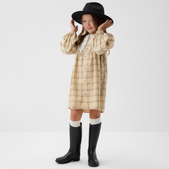Платье для девочки KAFTAN «Клетка», бежевое, рост 110-116 см — Характеристики