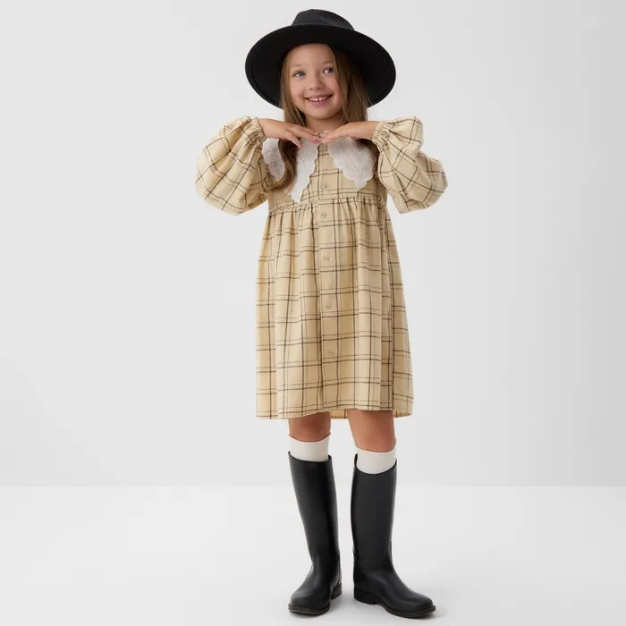 Платье для девочки KAFTAN «Клетка», бежевое, рост 110-116 см — Характеристики