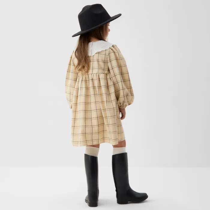 Платье для девочки KAFTAN «Клетка», бежевое, рост 110-116 см