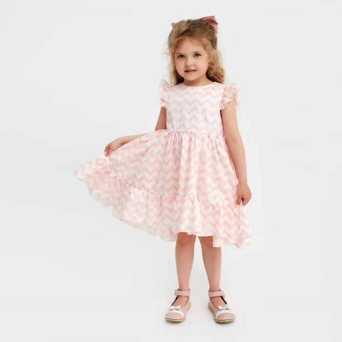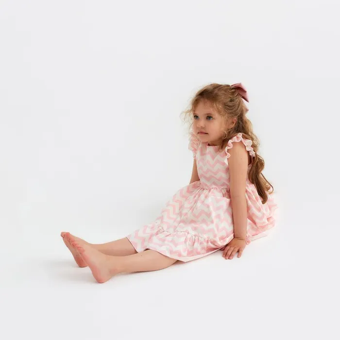 Платье для девочки KAFTAN «Зигзаг», размер 32 (110-116), цвет белый/розовый — Характеристики