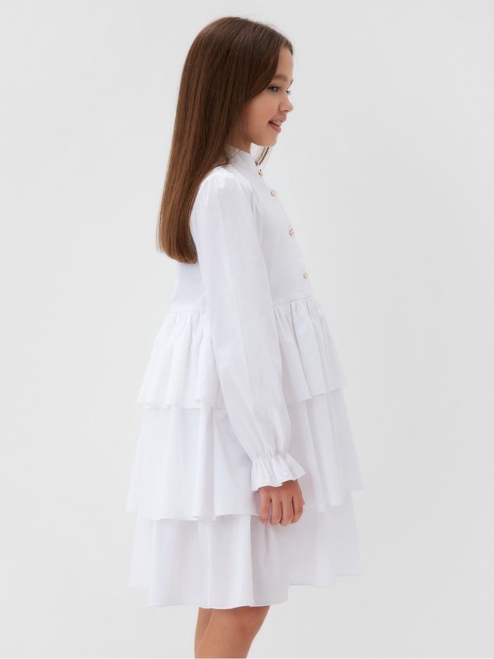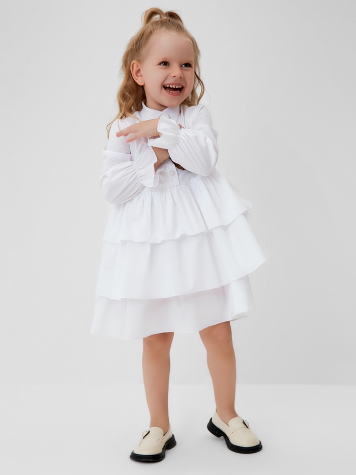 Платье для девочки MINAKU: Basic Line с рюшами, белое, рост 110-116 см — Характеристики