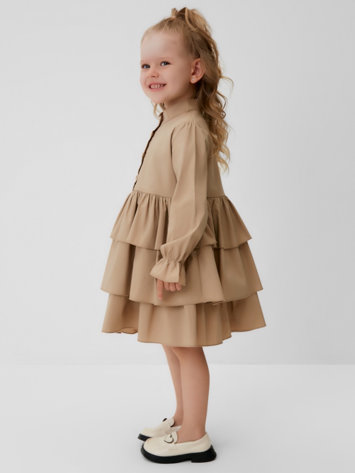 Платье для девочки MINAKU: Basic Line с рюшами, бежевое, рост 128-134 см — Характеристики