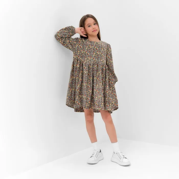Платье для девочки MINAKU: Casual Collection, серое, рост 122-128 см