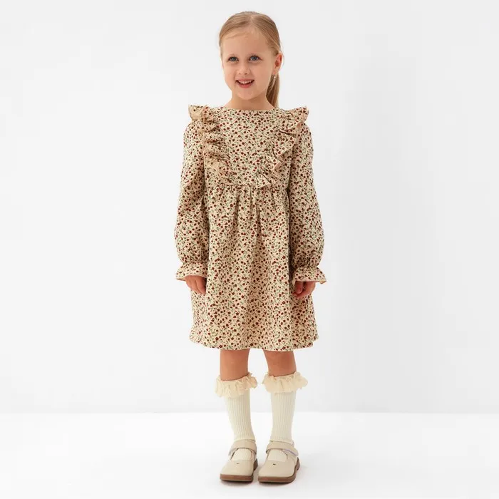 Платье для девочки MINAKU: Cotton collection, бежевое, рост 116 см — Характеристики