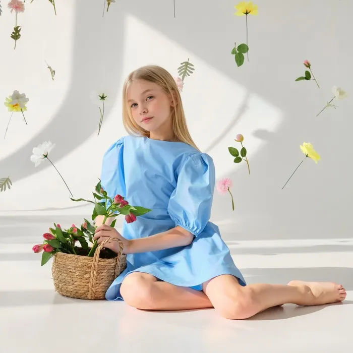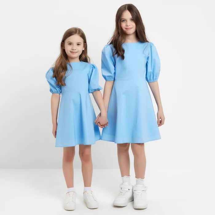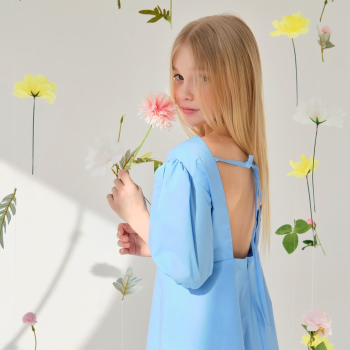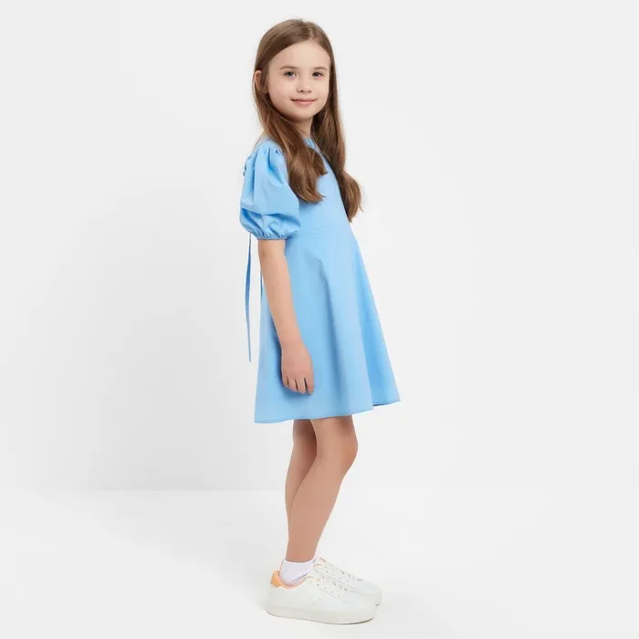 Платье для девочки MINAKU: Cotton collection, однотонное, голубое, рост 110-116 см — Характеристики
