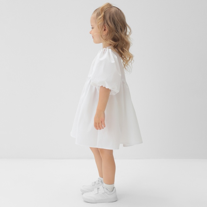 Платье для девочки MINAKU: Cotton collection с рукавами, белое, рост 122-128 см — Характеристики