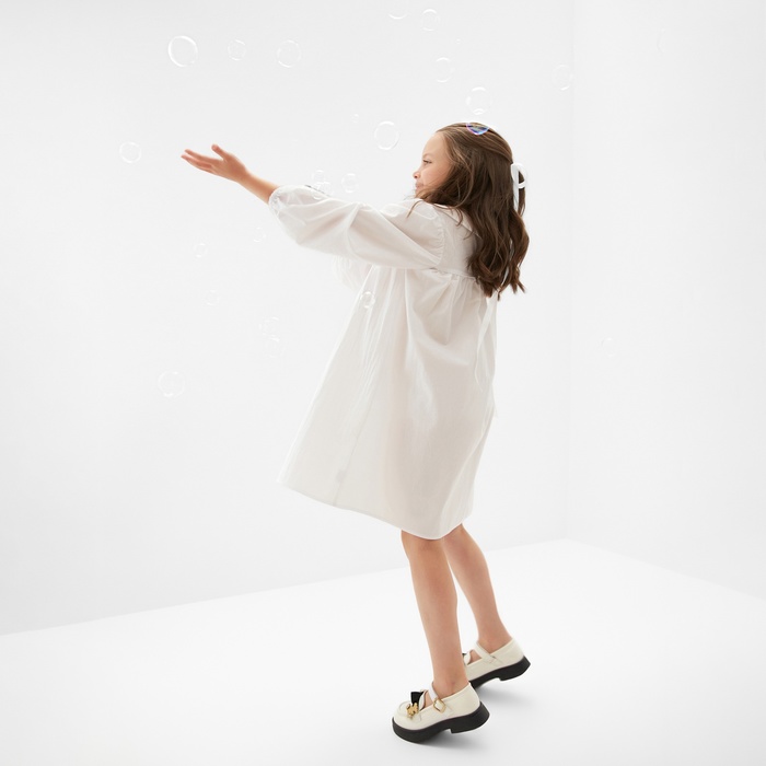 Платье для девочки MINAKU: Cotton collection с воротником, белое, рост 104-110 см — Характеристики