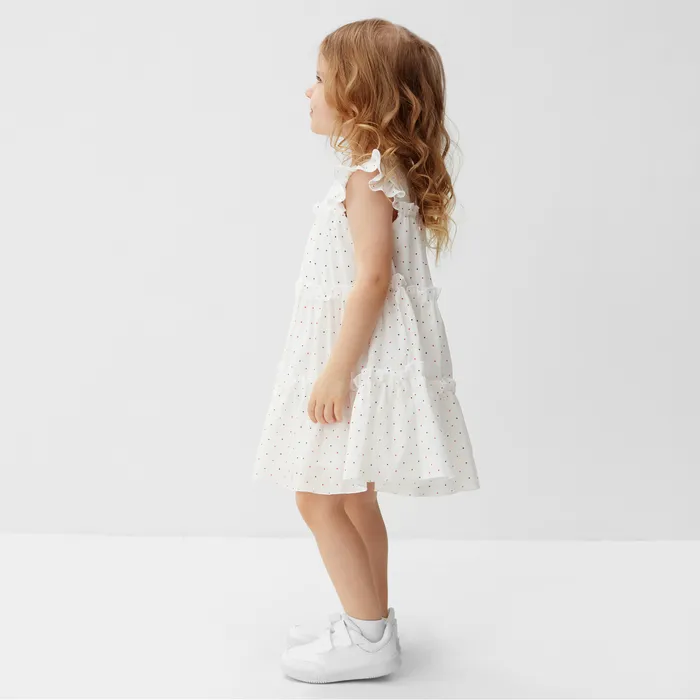 Платье для девочки MINAKU: Cotton collection в горошек, белое, рост 122-128 см — Характеристики