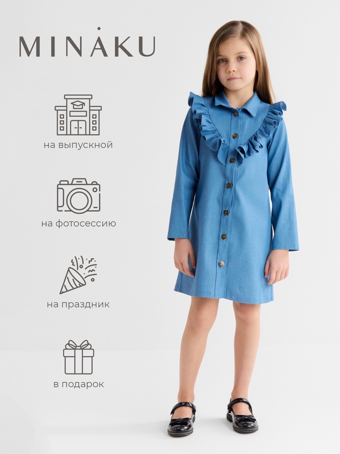Платье для девочки MINAKU: Jeans collection, цвет голубой, рост 164 см — Характеристики