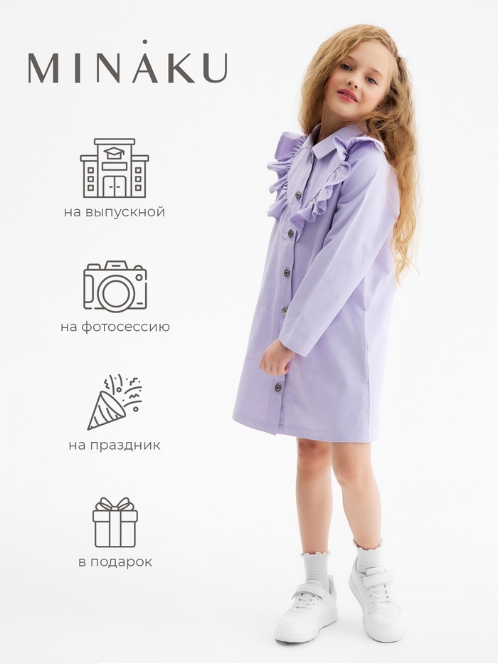 Платье для девочки MINAKU: Jeans collection, цвет лавандовый, рост 128 см — Характеристики