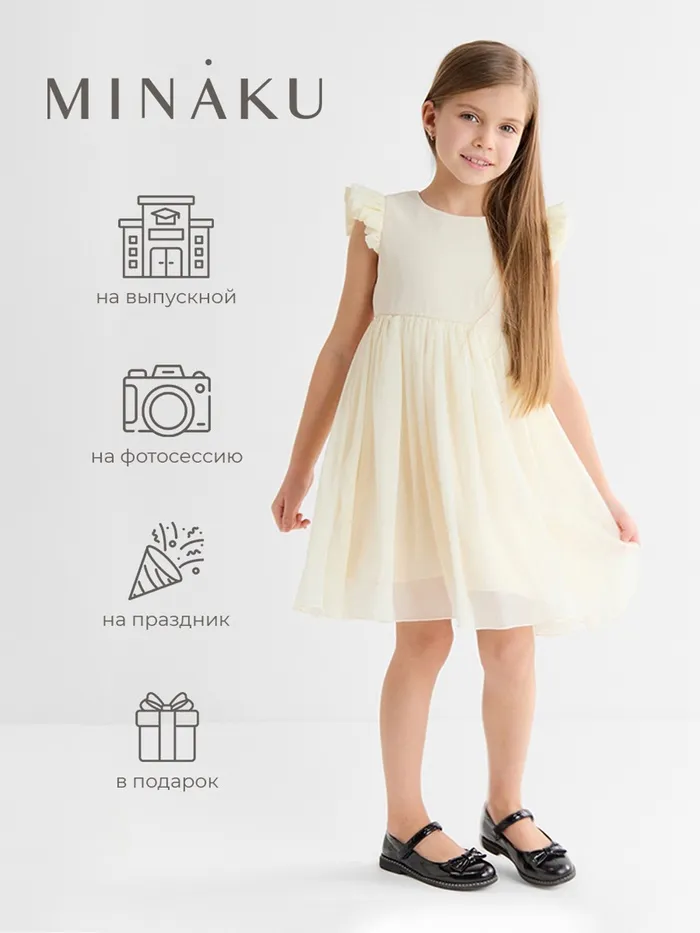 Платье для девочки, MINAKU :Party Dress, цвет молочный, рост 116 см — Характеристики