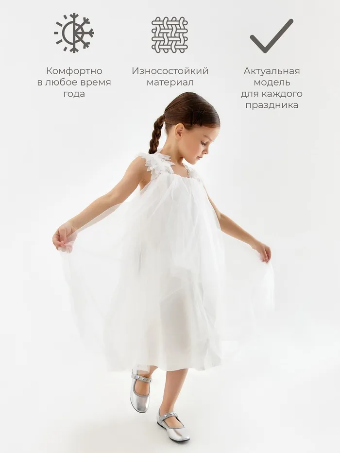 Платье для девочки MINAKU: PartyDress, белое, рост 110 см — Характеристики