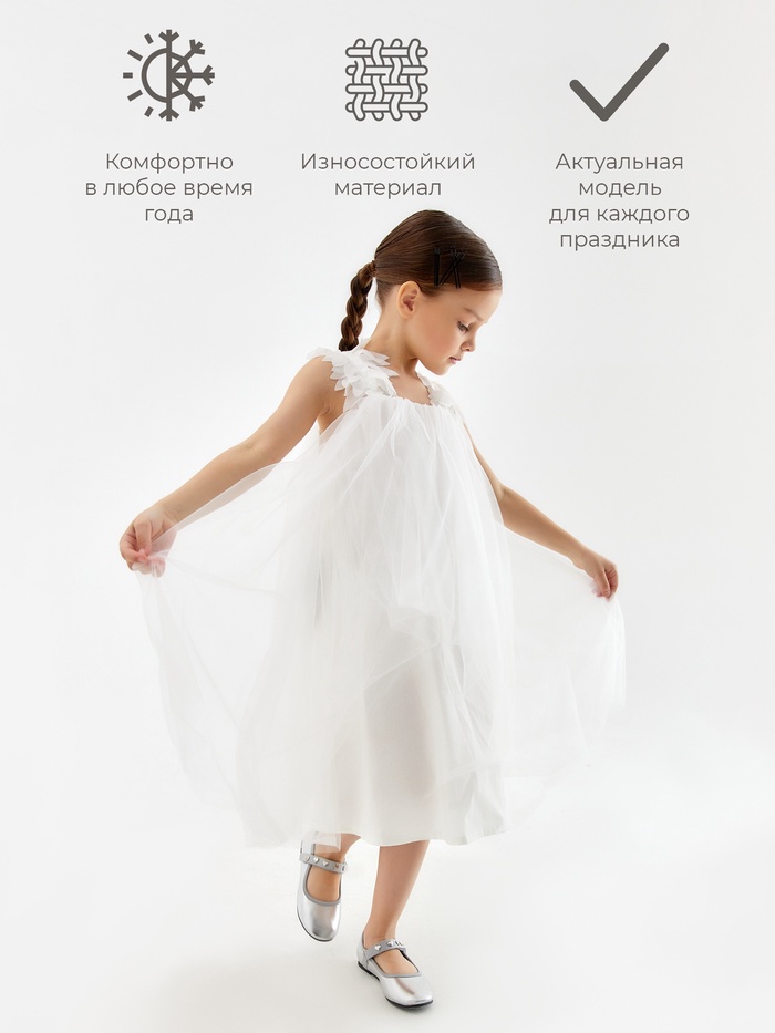 Платье для девочки MINAKU: PartyDress, белое, рост 134 см — Характеристики