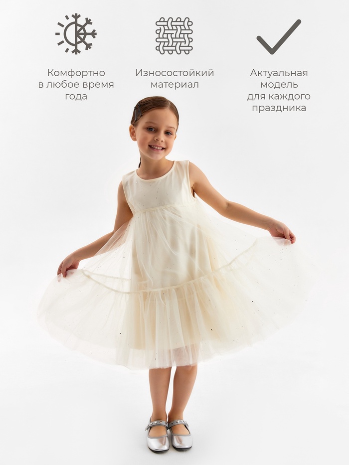 Платье для девочки MINAKU: PartyDress, молочное, рост 122 см — Характеристики