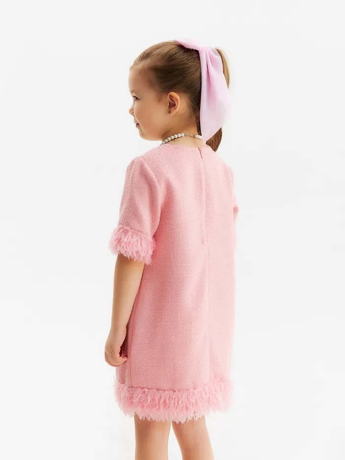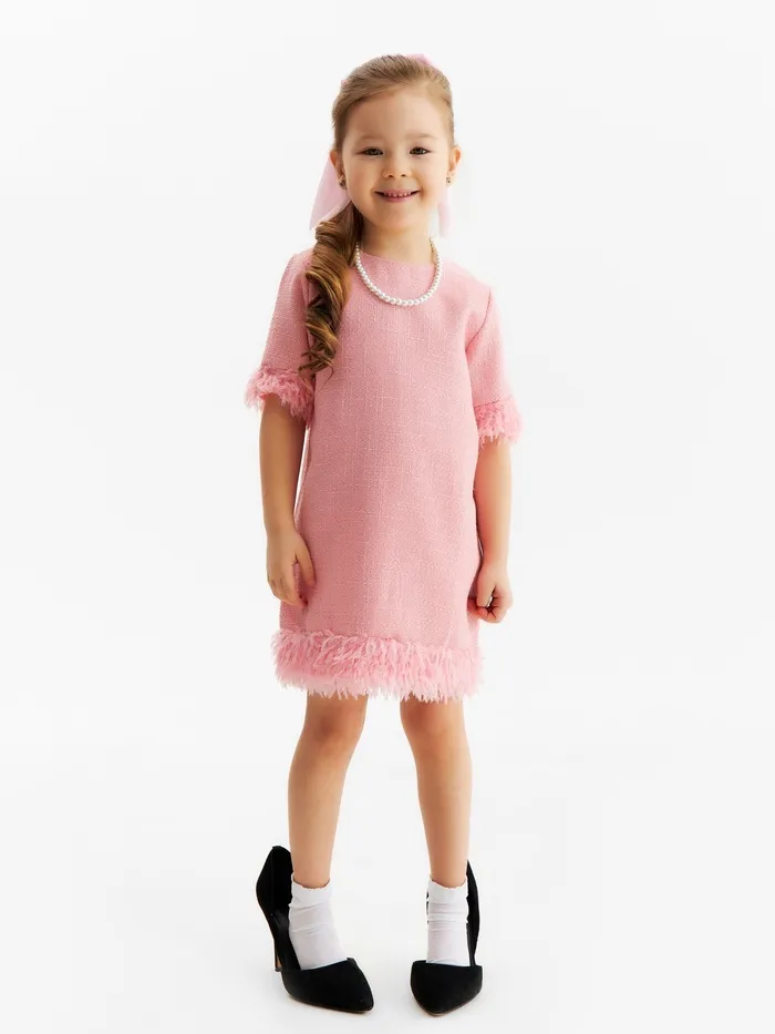 - Декоративные перья придают платью дополнительную элегантность и шик.