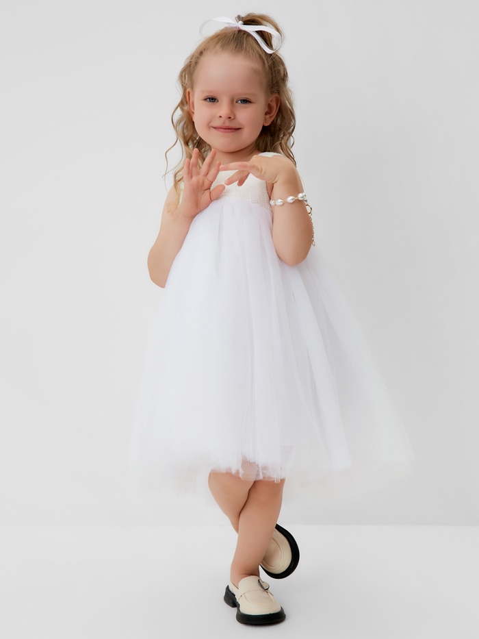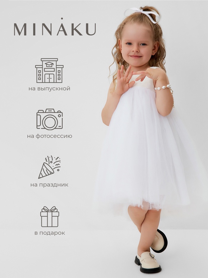 Платье для девочки MINAKU: PartyDress, с пышной юбкой, рост 110-116 см, белое — Характеристики